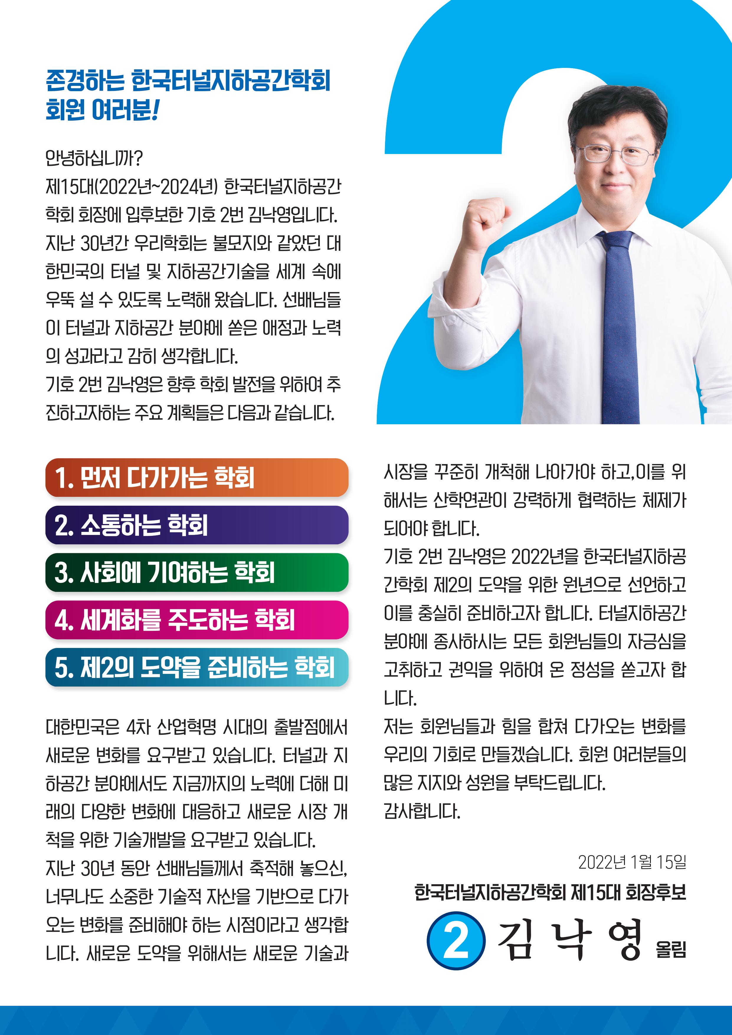 선거인 명부는 학회 홈페이지 공지 330번 '한국터널지하공간학회 제15대 회장선거 선거인 명부' 참조