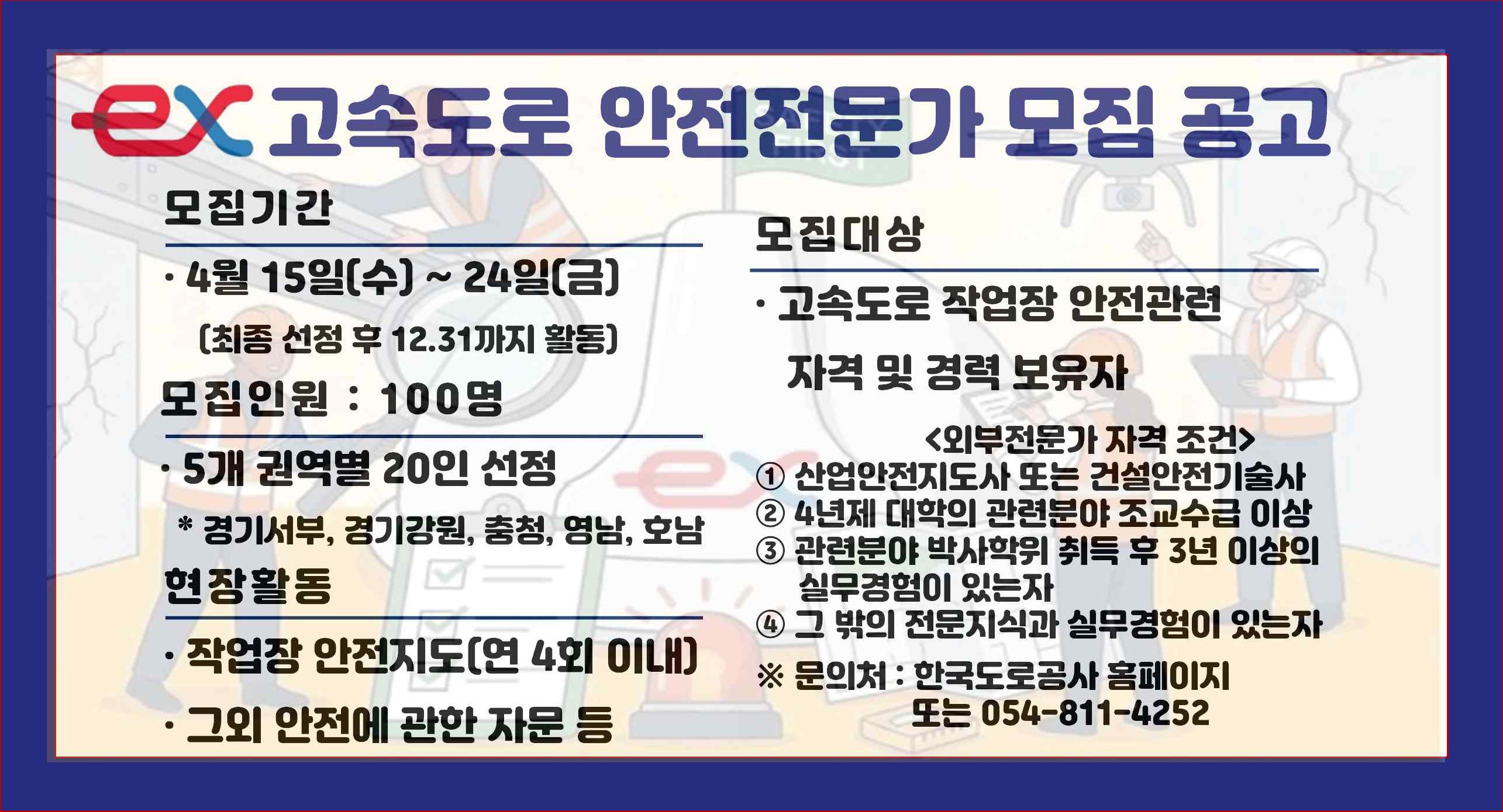 한국도로공사 홈페이지 -> 공사소개 -> 공지사항 -> 고속도로 작업장 지도 외부전문가 인력풀공모